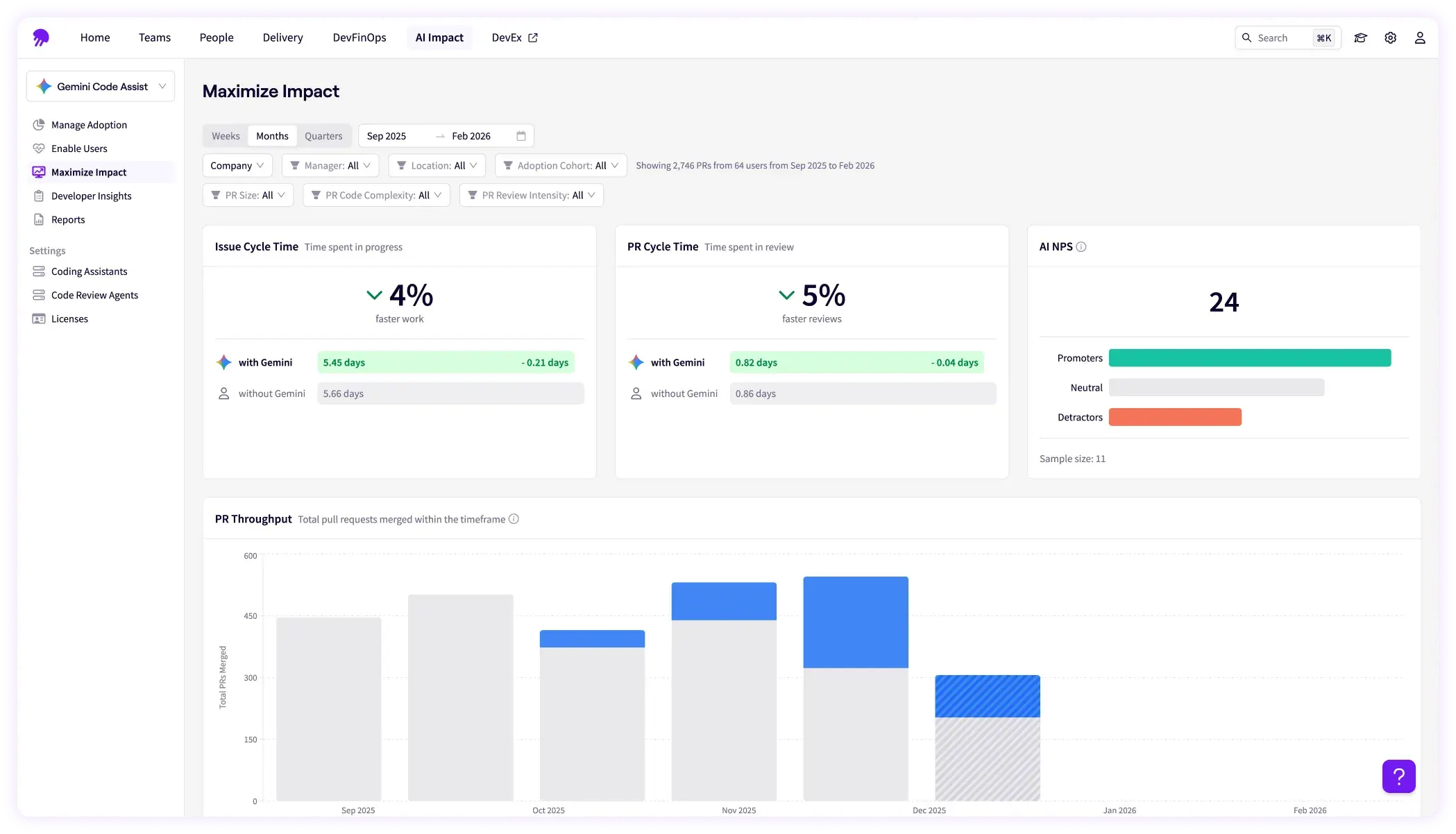 Measure Gemini Code Assist adoption and impact across developers and repos.