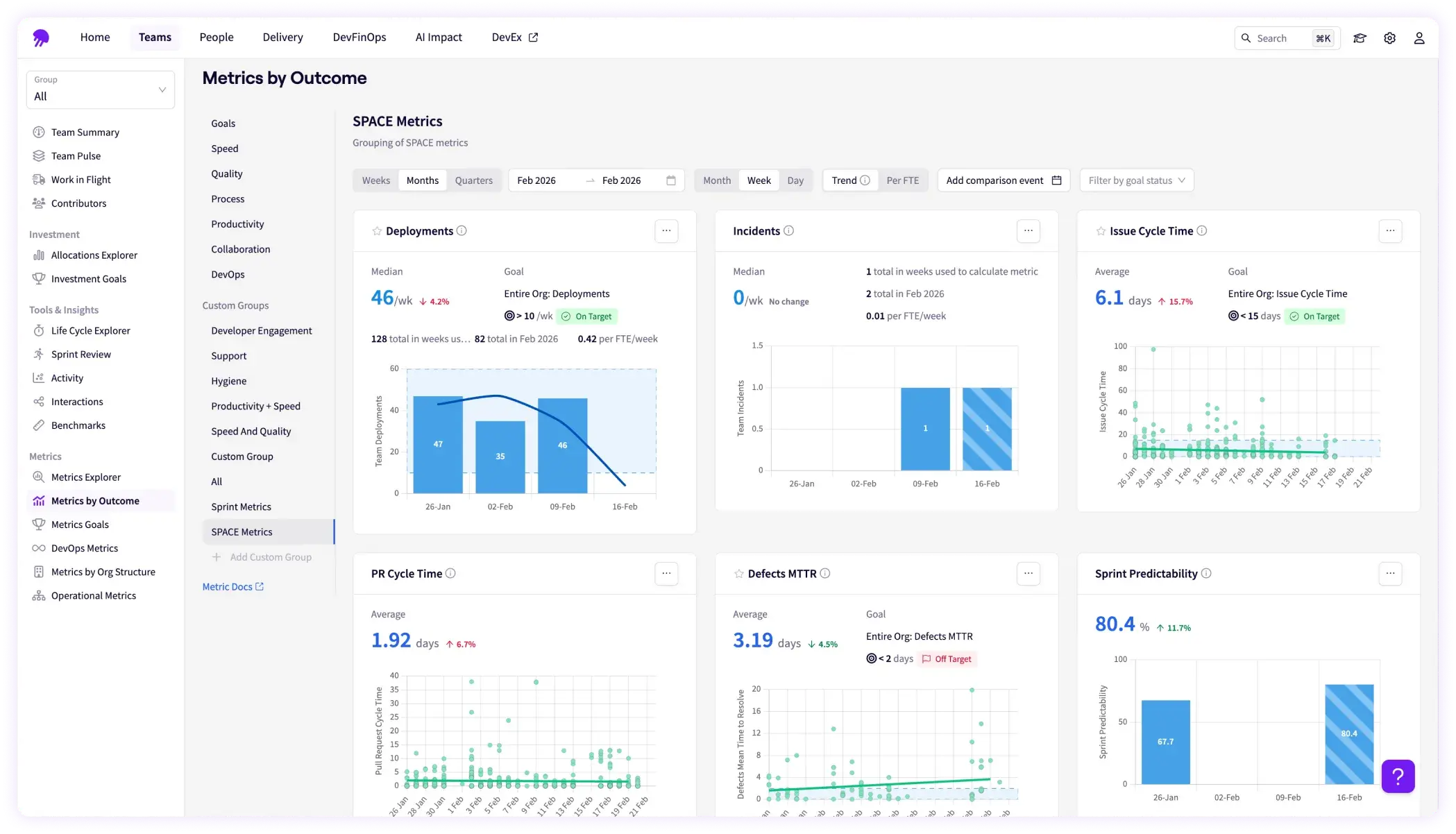 - Engineering metrics like lead time and cycle time