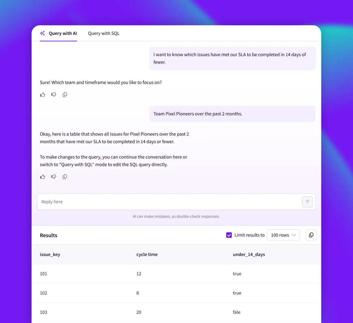 Visualize how AI is impacting your team and the SDLC. Answer complex questions about AI throughput and quality quickly.
