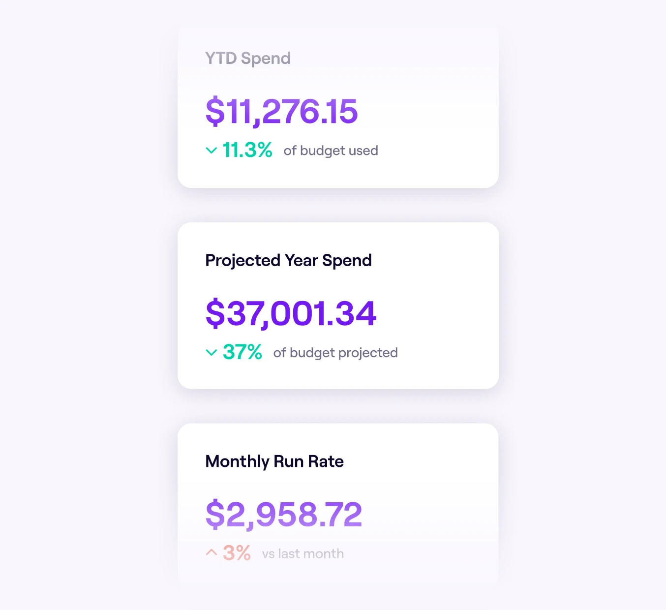 Use YTD spend, projected spend, and run rate insights to support accurate forecasting and budget decisions.