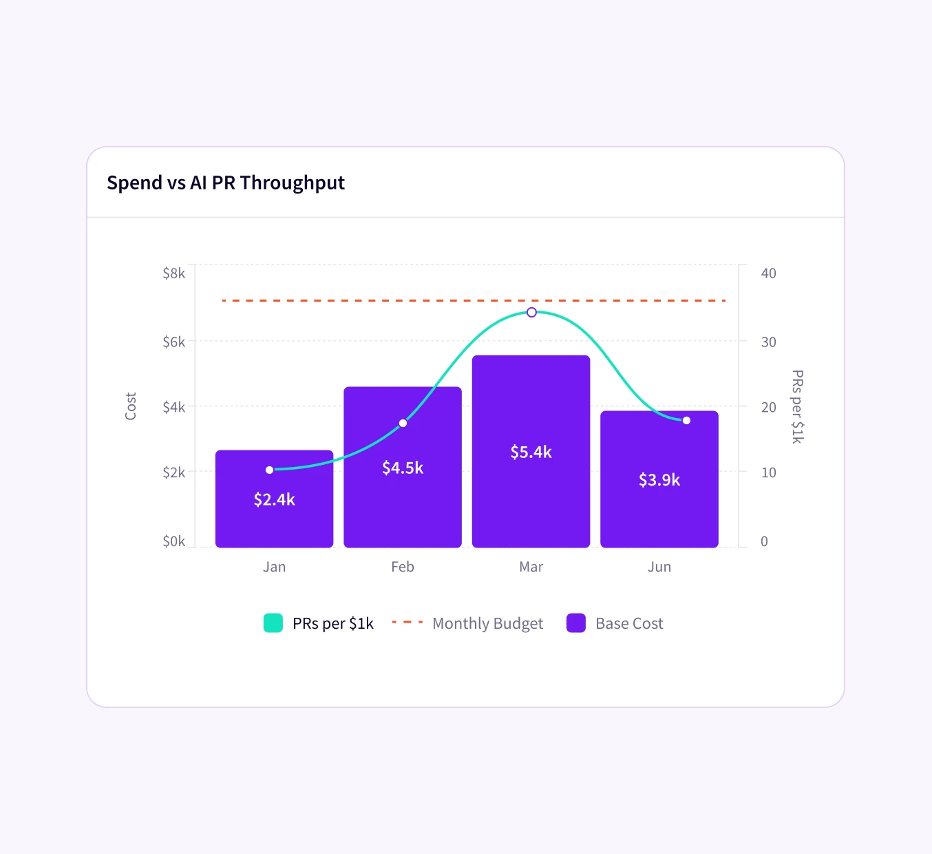 Track how spend correlates with PR throughput over time to understand real performance lift.
