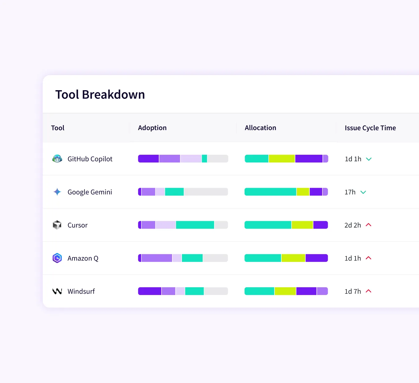 Track cycle time, throughput, and quality signals to identify your top-performing and underperforming tools.