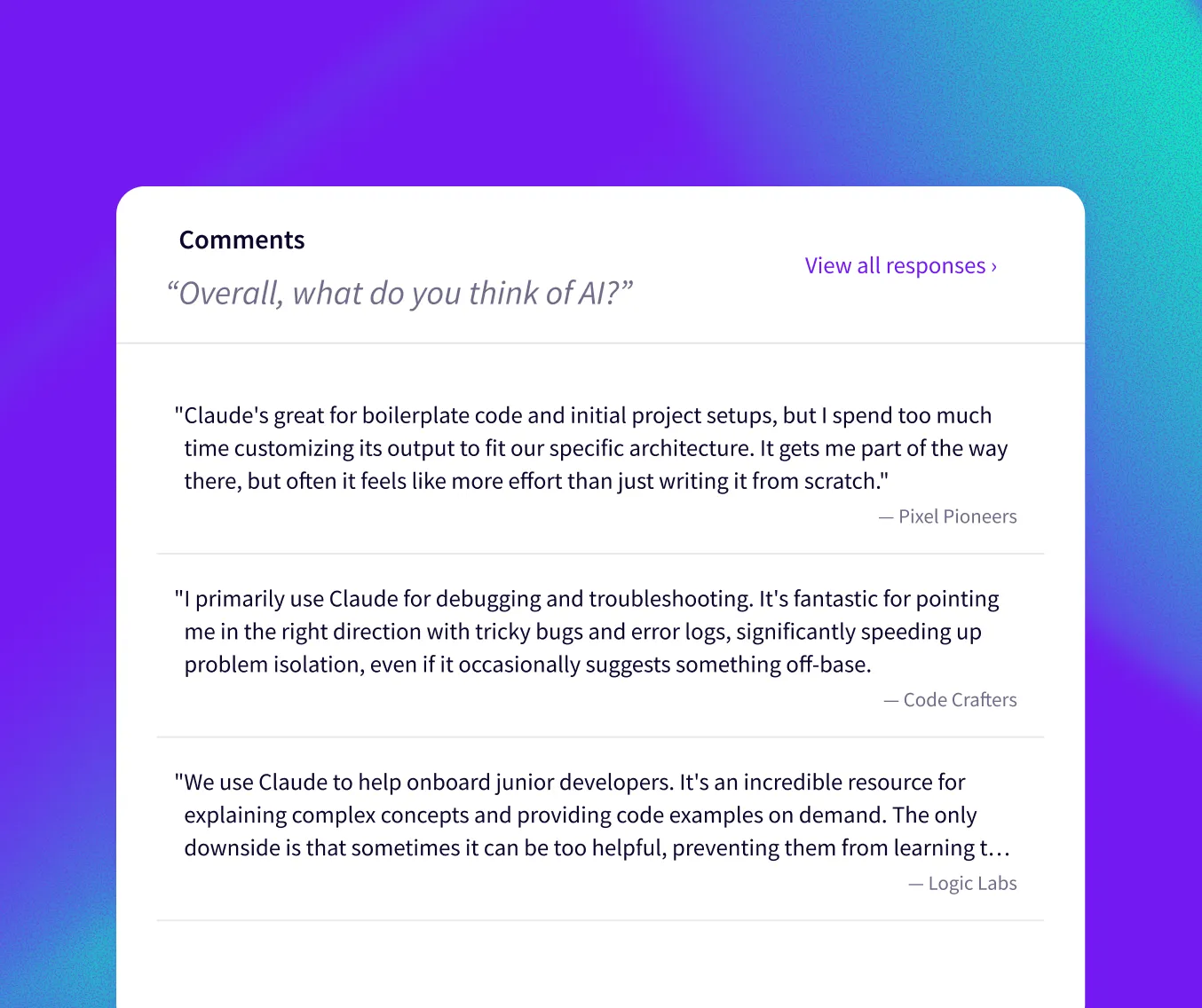Layer developer feedback alongside quantitative signals to understand tool usability, trust, and real-world preferences.